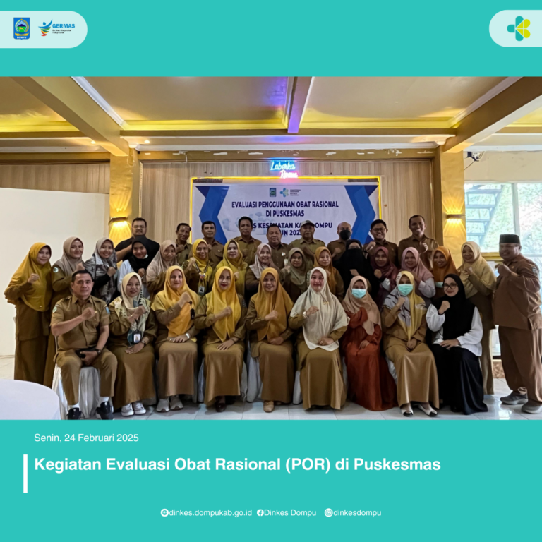 Dinas Kesehatan Kabupaten Dompu melalui bidang Pelayanan Kesehatan Seksi Farmakmin telah melaksanakan kegiatan Evaluasi Penggunaan Obat Rasional di Puskesmas bertempat di Aula Hotel Tursina (Selasa, 07/10/2025). Kegiatan tersebut dihadiri oleh 36 peserta perwakilan dari tiap puskesmas se-Kabupaten Dompu dan di buka oleh kepala Bidang Pelayanan Kesehatan, Ibu Hj. Rostiyati Arisandi, SST, Ners selaku Plh. Kepala…