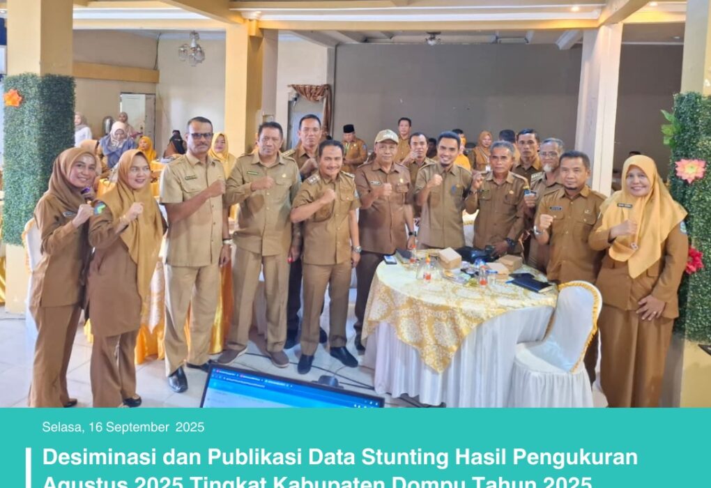 Pemerintah Daerah Kabupaten Dompu melalui Dinas Kesehatan Kabupaten Dompu, melaksanakan kegiatan Desiminasi dan Publikasi Data Stunting Hasil Pengukuran Bulan Agustus 2025, Selasa (16/09/25). Kegiatan tersebut dihadiri oleh Wakil Bupati Dompu Syirajuddin, SH, Sekretaris Daerah Gatot Gunawan Perantauan Putra, SKM., M.MKes, Kepala Dinas Kesehatan dan pimpinan OPD terkait. Peserta kegiatan ini berjumlah 137 orang. Pemerintah Daerah…