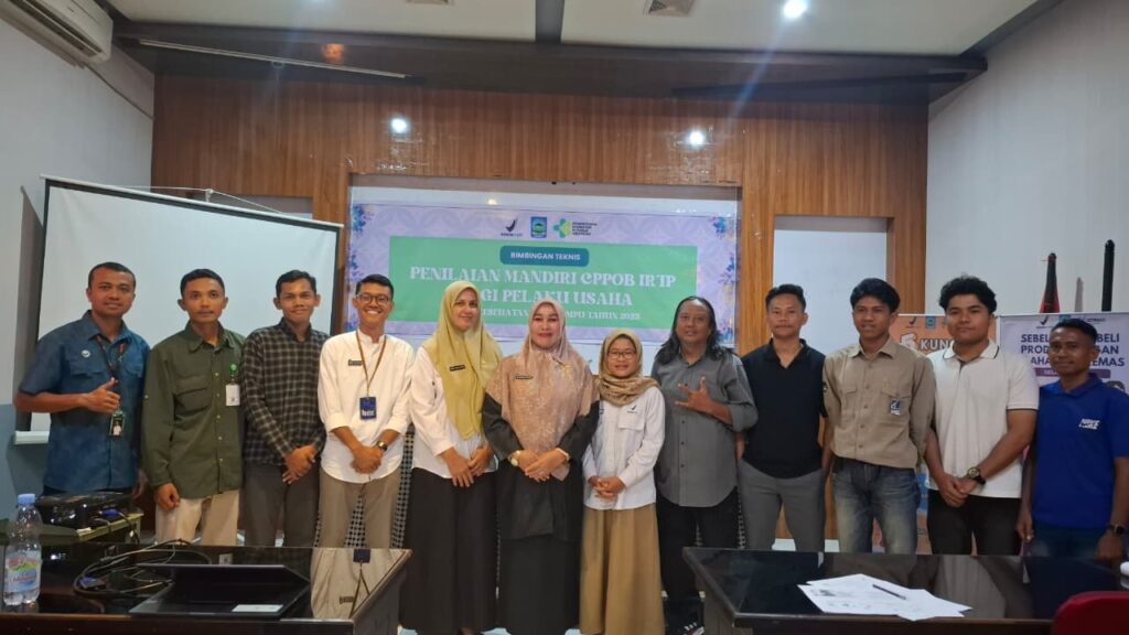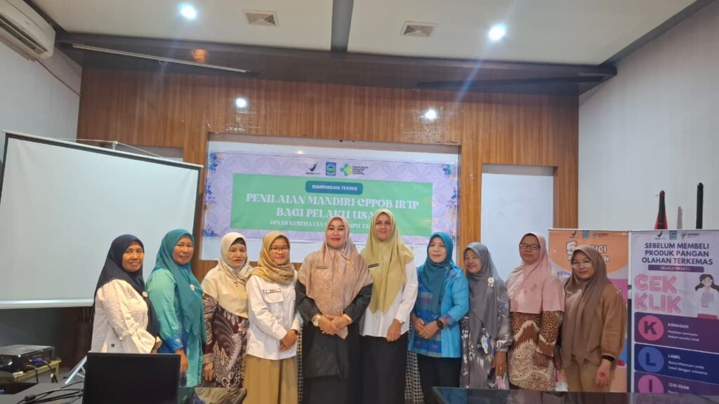 Industri Rumah Tangga Pangan (IRTP) memiliki peran penting dalam sistem keamanan pangan di Indonesia. Dengan melaksanakan Bimtek Penilaian Mandiri Cara Produksi Pangan Olahan yang Baik Bagi Industri Rumah Tangga Pangan (CPPOB-IRTP) merupakan salah satu upaya Pemerintah Daerah untuk dapat melakukan pengawasan sarana dan produk pangan Industri Rumah Tangga Pangan (PIRT) sesuai dengan ketentuan Perundang- undangan. Kegiatan ini bertujuan untuk meningkatkan kepedulian keamanan pangan pelaku usaha agar dapat menerapkan CPPOB-IRTP sesuai dengan ketentuan yang ada.