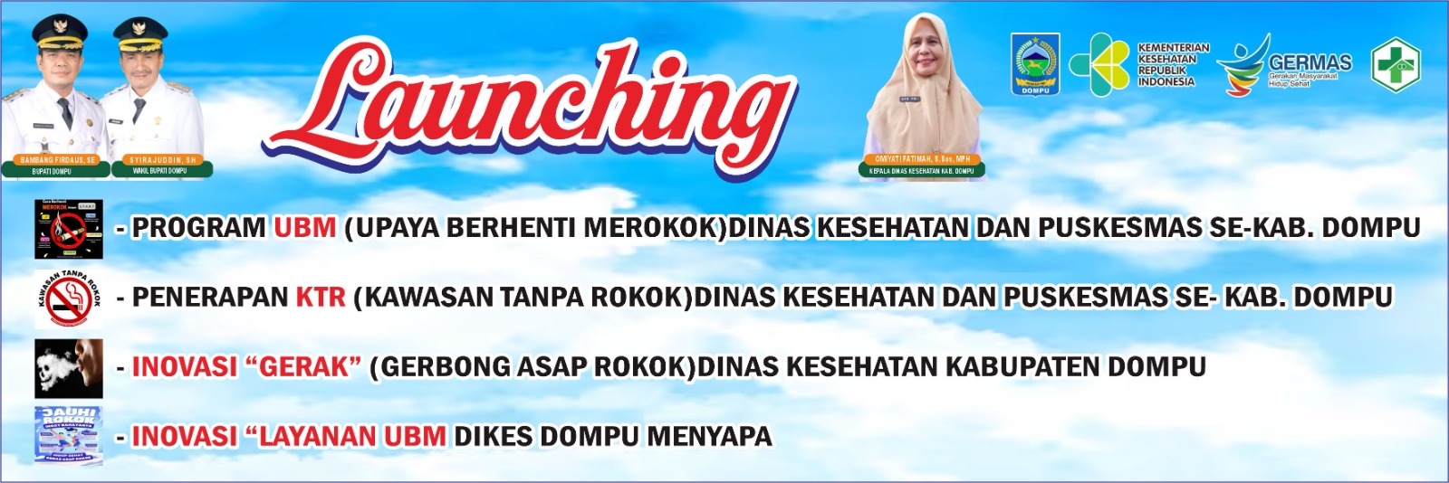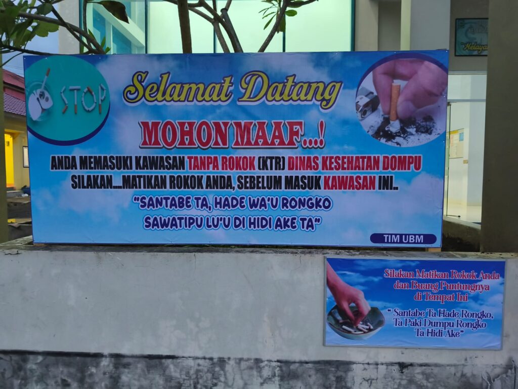 Dalam rangka penerapan PERDA KTR No.3 Tahun 2015, Dinas Kesehatan Kabupaten Dompu memperkuat dengan SK Kepala Dinas Kesehatan Kabupaten Dompu membuat SK KTR Lingkup Dinas Kesehatan dan SK pembentukan SATGAS KTR internal Dinas Kesehatan Kabupaten Dompu. Pada kesempatan yang berbahagia bagi insan kesehatan yaitu pada momen HKN yg ke- 61 tahun 2025, Dinas Kesehatan Kabupaten Dompu melakukan launching beberapa program dan Inovasi unggulan dalam mendukung Program KTR dan Program UBM (Upaya berhenti merokok) sebagai bentuk mendukung program Provinsi NTB dan Program Nasional demi terwujudnya Indonesia emas.