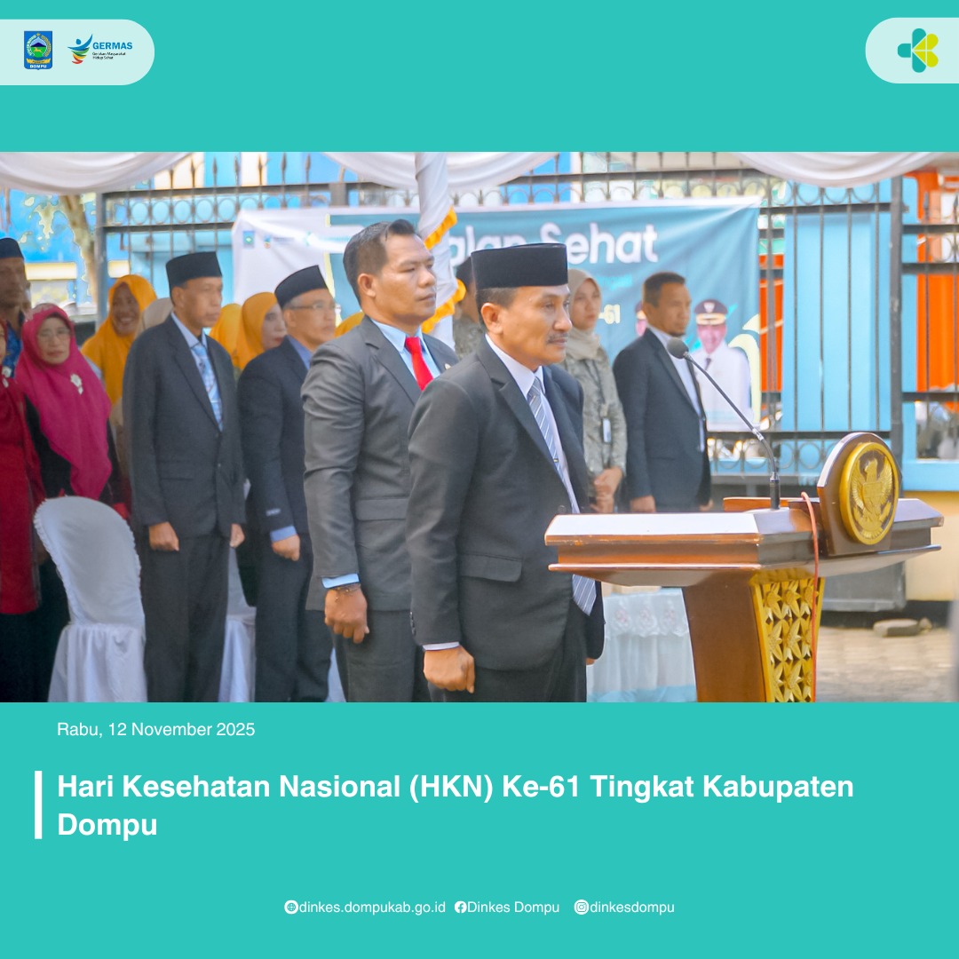 Tema utama yang diusung oleh Kementerian Kesehatan RI untuk HKN ke-61 tahun 2025 adalah “Generasi Sehat, Masa Depan Hebat”. Tema ini menekankan pentingnya kesehatan sebagai investasi jangka panjang untuk membangun bangsa yang kuat dan produktif di masa depan. Dalam rangka memperingati HKN Ke-61 tahun 2025, Dinas Kesehatan Kabupaten Dompu bersama RSUD Dompu, RSUD Manggelewa dan Puskesmas se-Kabupaten telah melaksanakan berbagai rangkaian kegiatan seperti lomba volly, karaoke unsur pimpinan lingkup kesehatan dan jalan sehat dilanjutkan dengan pemberian doorprize. Upacara Peringatan Hari Kesehatan Nasional (HKN) ke-61 tanggal 12 November 2025 bertempat di halaman Dinas Kesehatan Kabupaten Dompu dan dihadiri oleh Pimpinan OPD lingkup Pemerintah Kabupaten Dompu. Bertindak sebagai Inspektur Upacara Bapak Wakil Bupati Dompu, H. Syirajuddin, SH. Pada momen peringatan HKN ini juga diberikan apresiasi kepada berbagai pihak yang telah berkontribusi dalam pembangunan kesehatan.