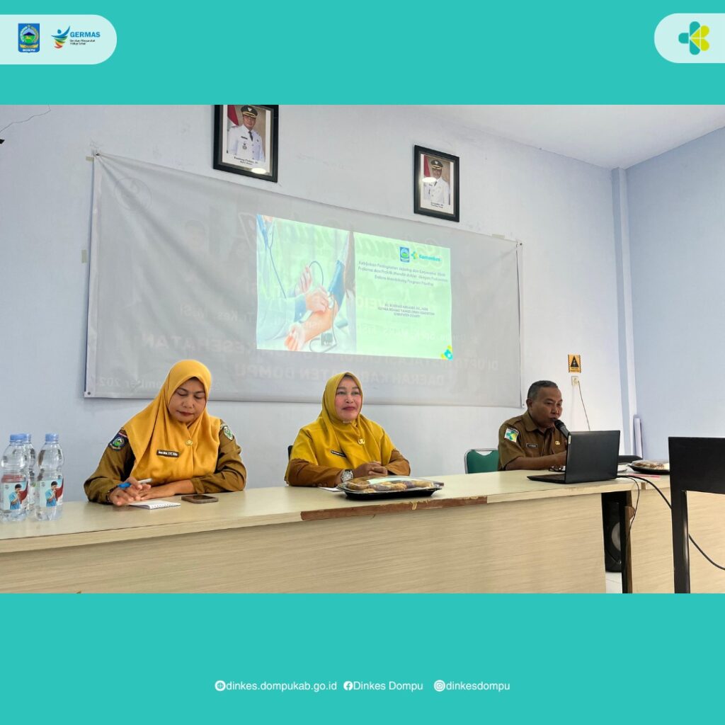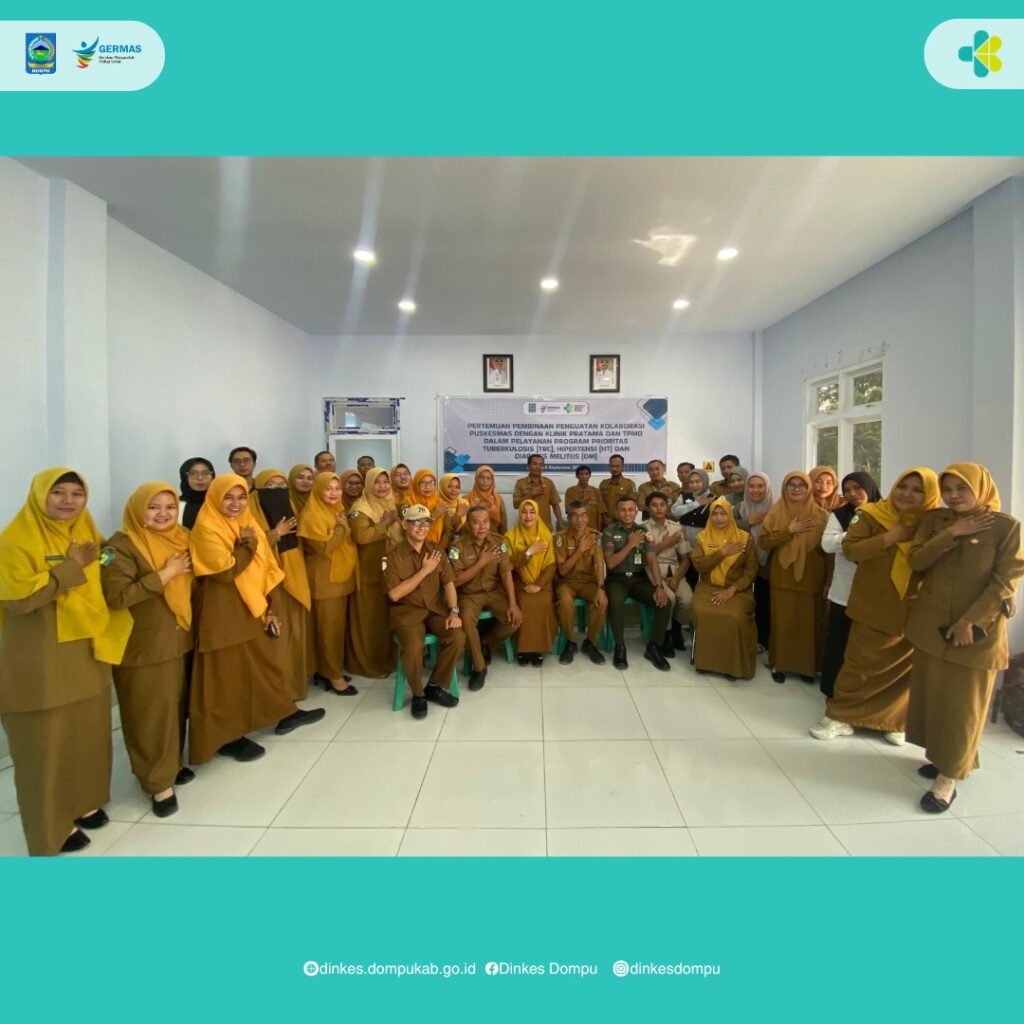 Dinas Kesehatan Kabupaten Dompu melalui bidang Pelayanan Kesehatan telah menyelenggarakan PertemuanPembinaan Penguatan Kolaborasi Puskesmas Dengan Klinik Pratama dan TPMD Dalam Pelayanan Program Prioritas Tuberkulosis (TBC), Hipertensi (HT) dan Diabetes Melitus (DM) bertempat di Aula Labkesda (Selasa, 16/9/2025). Kegiatan ini dihadiri oleh 42 peserta dari Klinik Pratama dan Praktek Dokter Mandiri (TPMD).