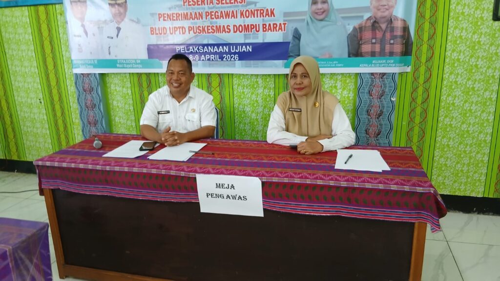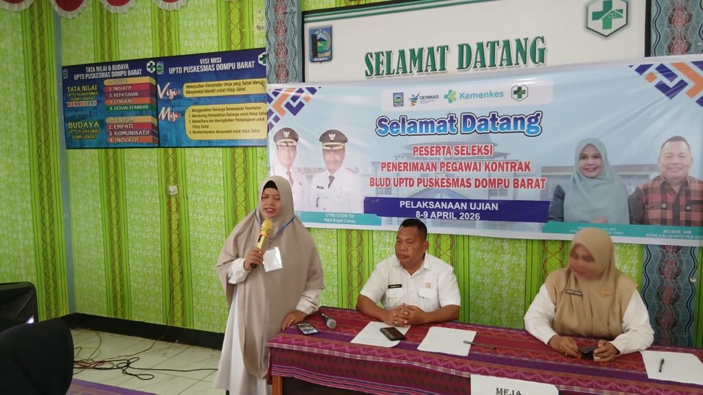 (PromkesDobar) Dompu, 8 April 2026 BLUD UPTD Puskesmas Dompu Barat menggelar seleksi penerimaan pegawai kontrak pada Rabu (8/4/2026). Kegiatan ini dilaksanakan selama dua hari, dengan hari pertama berupa tes tertulis dan hari kedua dilanjutkan dengan tes wawancara.